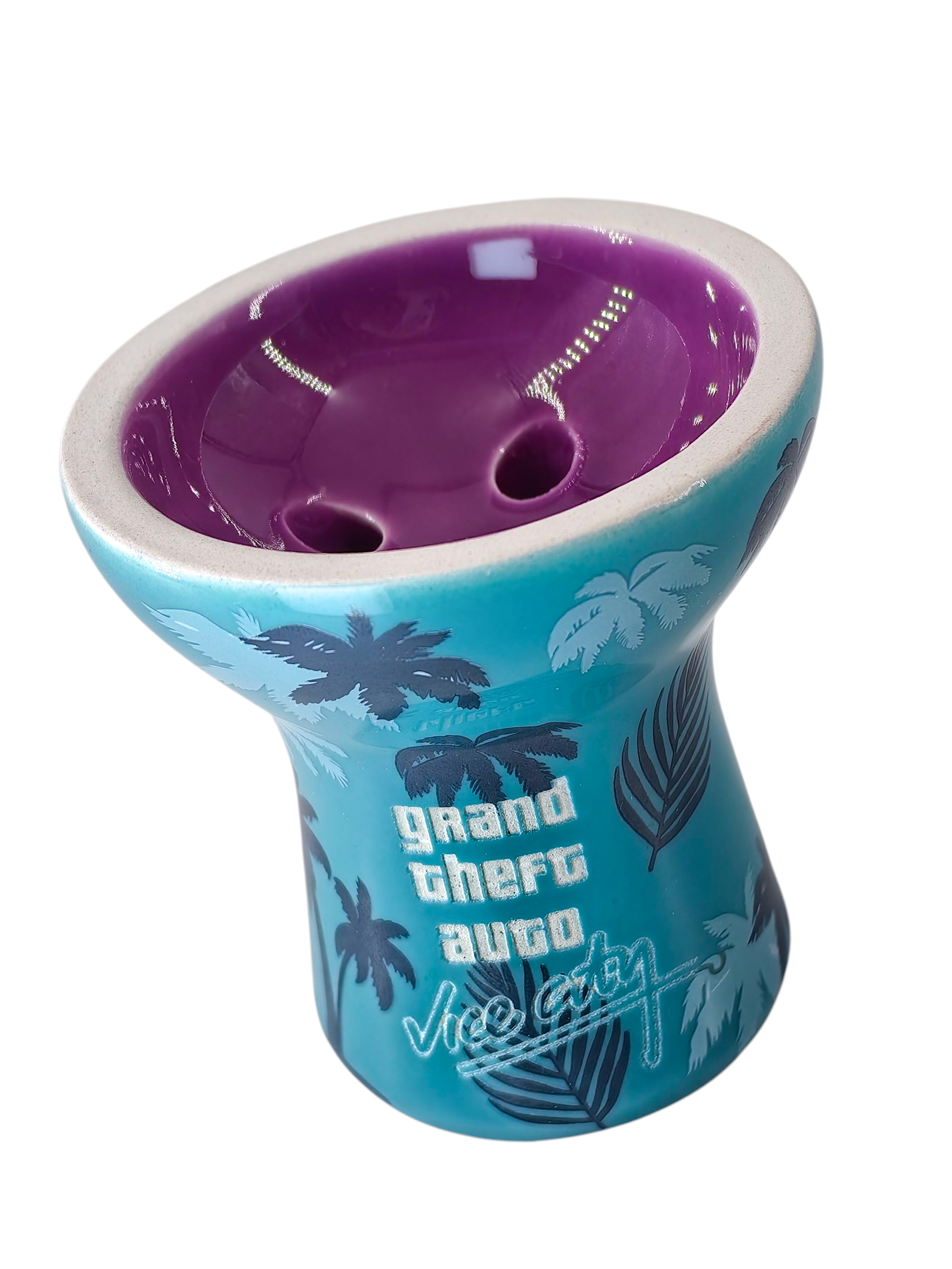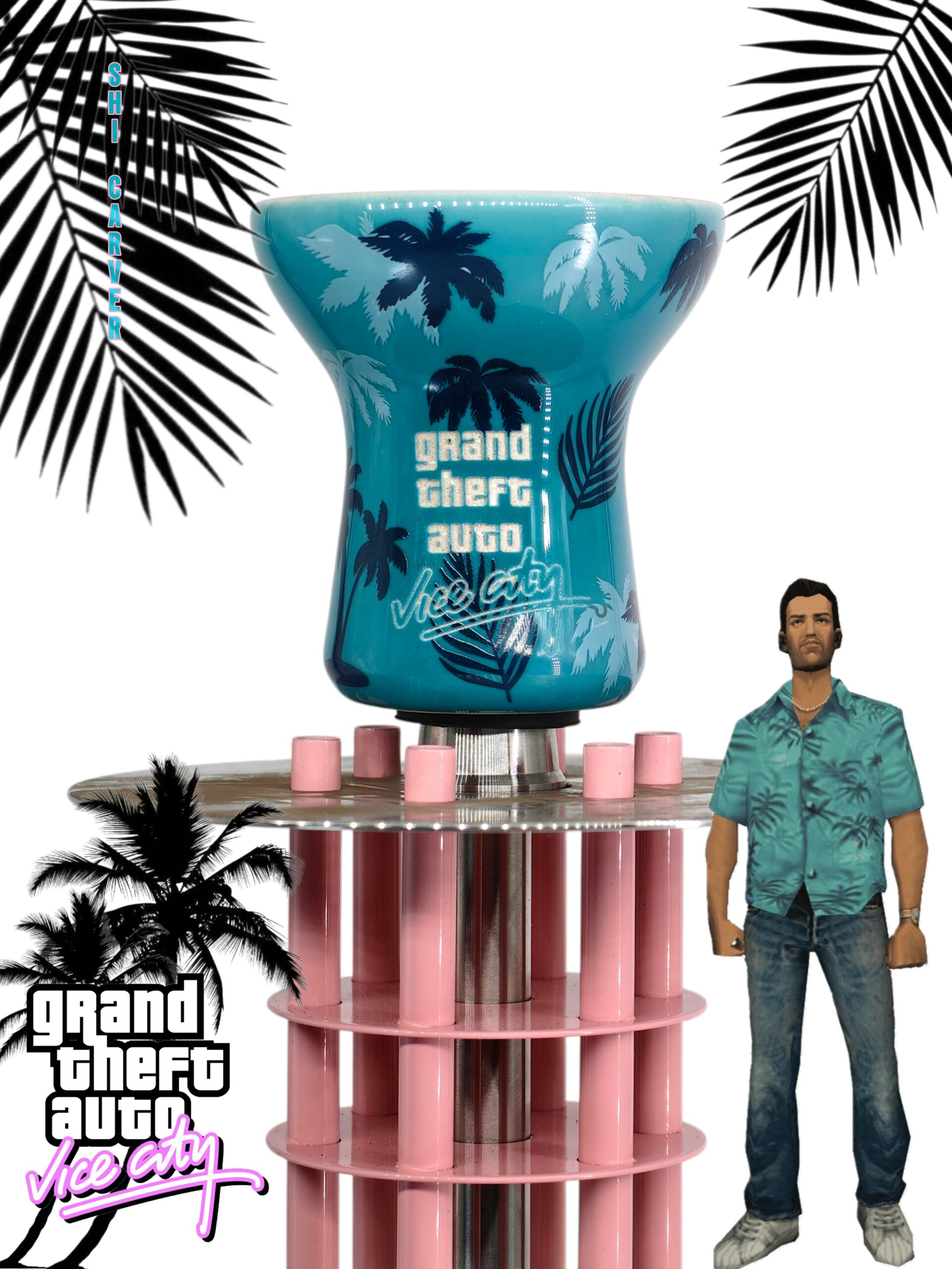 ראש נרגילה במהדורה מוגבלת (500 יחידות בלבד) בעיצוב האייקוני של חולצת Tommy Vercetti מ-GTA Vice City. ראש בסגנון "טורקיש" עשוי חימר לבן איכותי בציפוי גלזורה, עם מספר סידורי אישי לכל יחידה. אידיאלי לעישון טבק חזק ובינוני. פריט לאספנים – ייצור מוגבל.